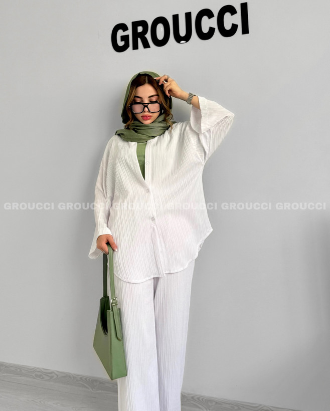 ست شومیز و شلوار بهترین کیفیت پارچه و دوخت خنک ترینه سایزبندی:۴۸(فری سایز)