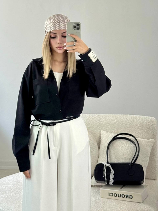 ▪️بند پایین شومیز قابل تنظیمه و میتونید مدل مختلف استایلش کنید