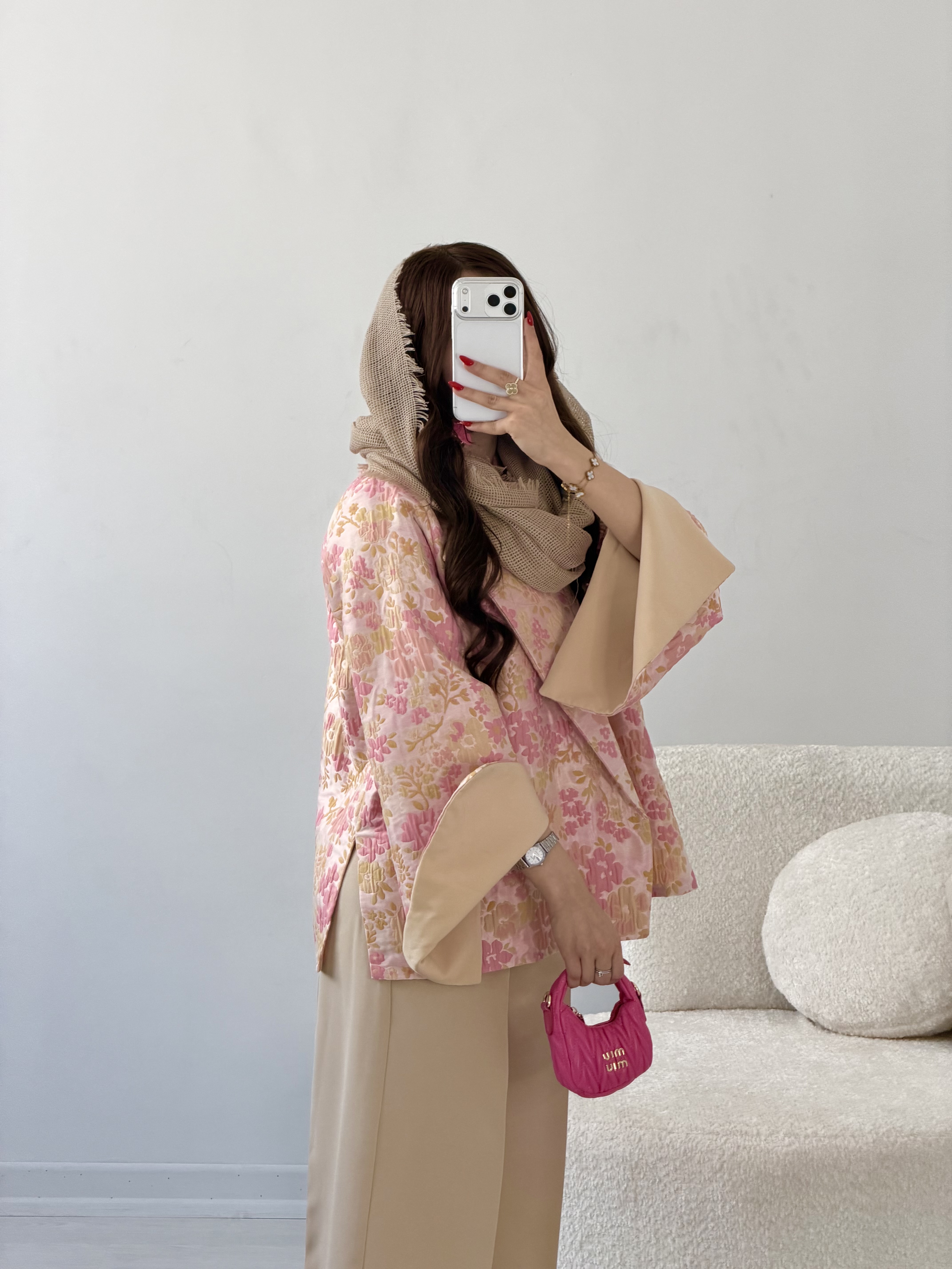 پارچه ژاکارد ترک اصل کیفیت ضمانتی قد حدودا۶۸ داخل استین پارچه کار شده فری سایز مناسب36-44