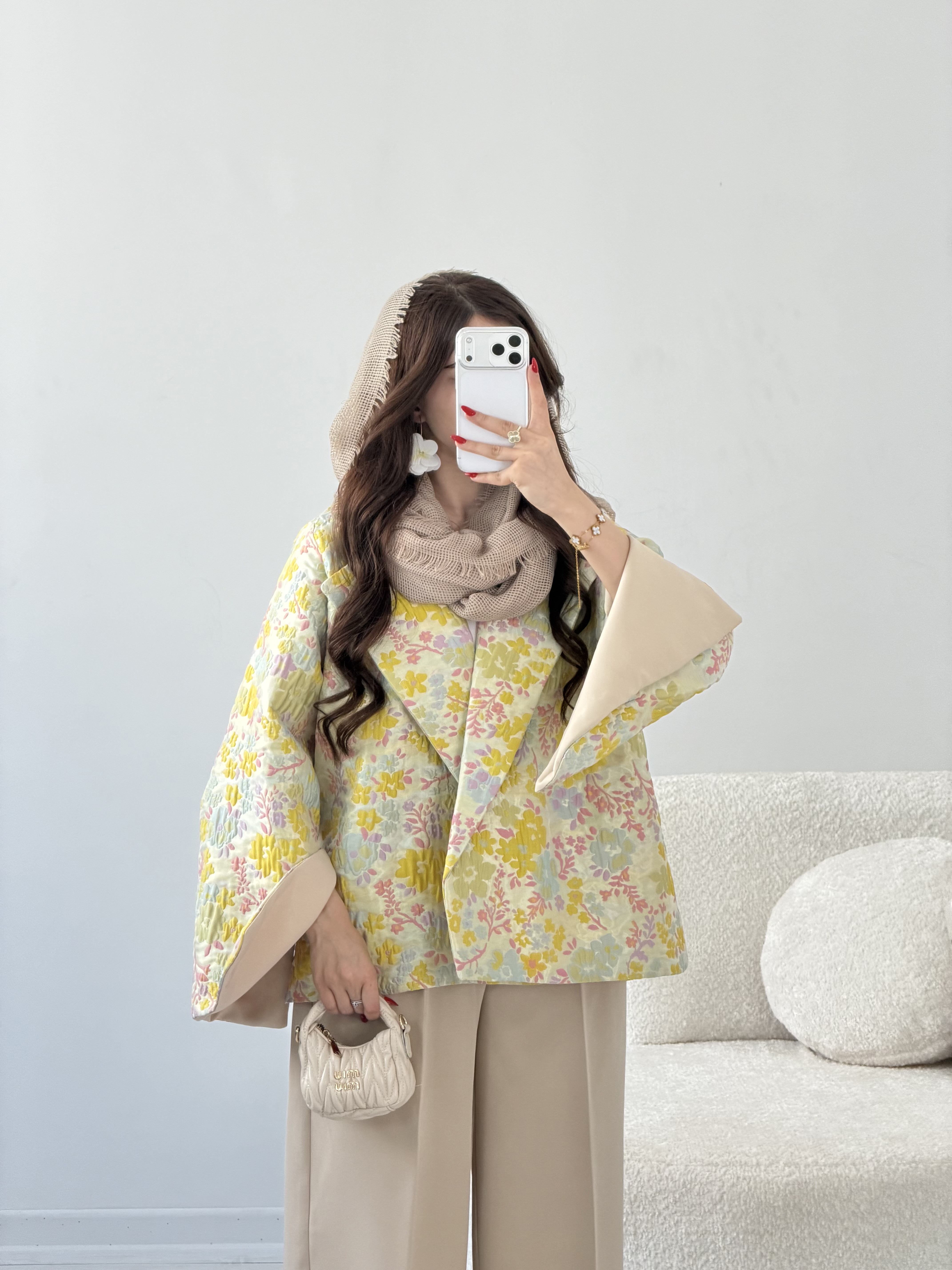 قد کت حدودا۶۸ داخل استین پارچه کار شده فری سایز مناسب36-44