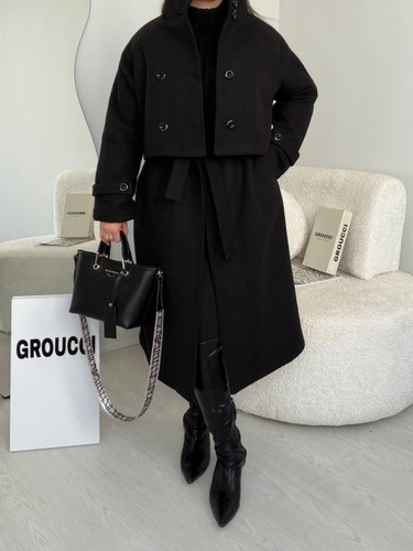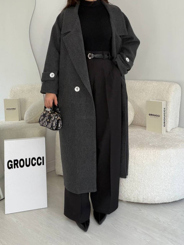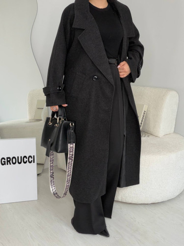کت خز کلاه دار طرح دوم ( رنگ طوسی )